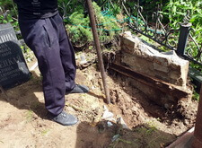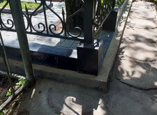 На фотографиях ниже видно промежуточное состояние места захоронения после укладки наземного покрытия и восстановления цветника.