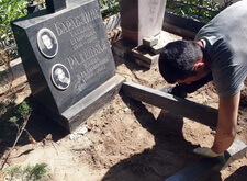 Пока семена всходили, мы восстановили надписи на памятниках, а также протёрли сами надгробья специальной жидкостью, защищающей гранит.