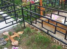 Перед нами стандартная могила, где уже захоронено два человека. Мы оставляем без изменения только ограду, ее мы только надежно зацементируем и покрасим. Все остальное мы изготовим и установим.