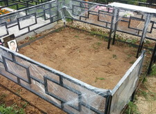 Далее мы привозим гранит для подставки под памятник, балки цветника и брусчатку. Для того, чтобы брусчатка не разваливалась в последствии по бокам, мы обвариваем периметр под оградой металлической полосой. После установки гранита и брусчатки могила выглядит следующим образом.