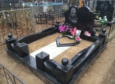 Мемориальный комплекс из черного гранита с цветником в виде сердца
