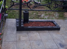 Далее мы перекрасили ограждение, установили подставку, сам памятник, прямоугольный цветник. Работу заканчивали в дождь, поэтому фотографий сухого место захоронения нет. На последнем снимке чётко видно, что даже на мокром памятнике выгравированная надпись очень легко читается.