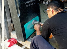 В завершении покрываем надписи на памятнике специальным обновляющим раствором. На этом наша работа над данным заказом заканчивается. Клиент был очень доволен результатами, а потому оставил положительный отзыв.