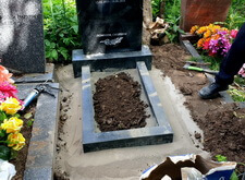 Пока бетон высыхал окончательно, мы приводили в порядок постамент, готовя его к посадке доставленного на участок после переполировки памятника.