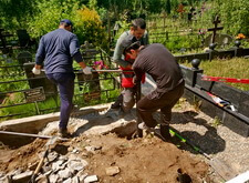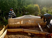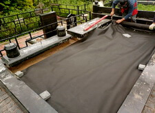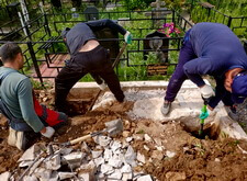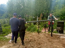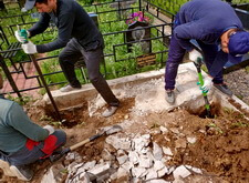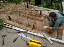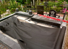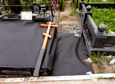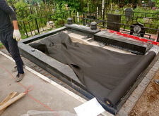 Укрываем место захоронения геотекстилем и приступаем к сборке и установке памятников.