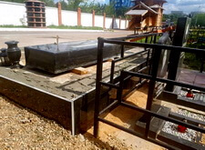 Первым делом мы принялись за демонтаж находящихся на участке объектов. Цоколь был снесён без труда, однако с удалением основания плиты возникли проблемы. Его не удалось сломать даже отбойным молотком, в результате было принято решение оставить его как есть.