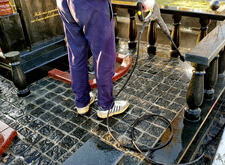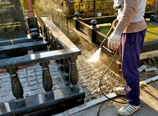 Приступаем к уборке участка. Смыли кёрхером строительную пыль, протёрли гранит.