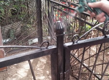 Здесь видно насколько хорошо зачищена ограда. Как обычно чистим до металла.