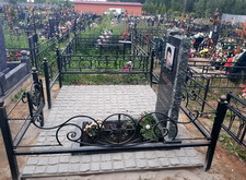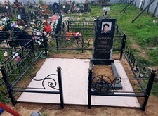 Брусчатку замываем водой: пескобетон размокает, превращаясь в надёжный скрепляющий раствор. На этом наши работы на могиле закончены, клиент выразил благодарность за оперативность и качество оказанных услуг.