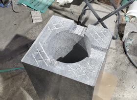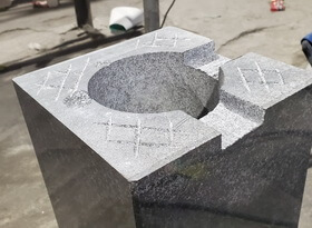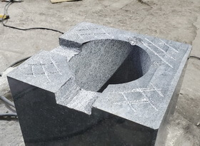 Отдельно отмечу, что в нижней части вазы предусмотрены две сточные канавки для слива попадающей внутрь влаги. Несмотря на то, что гранит – один из самых надёжных и стойких материалов, застой воды (особенно зимой) может привести к фатальным последствия, ведь она, как известно, даже камень точит. Для более надёжного крепления вазы к наземному покрытию на днище нанесены специальные риски.