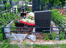 Когда от клиента было получено разрешение приступить к работам, мы вновь вернулись на кладбище. Могила к этому времени приобрела довольно-таки неприглядный вид: место захоронения полностью заросло травой, практически скрыв памятник. Это проблему заказчик предпочёл решить наземным покрытием.